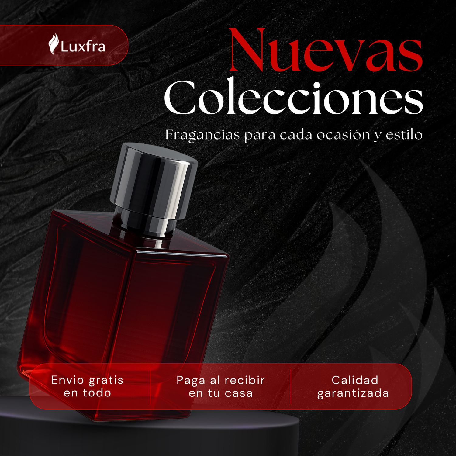 En Luxfra, entendemos que un perfume es una extensión de tu personalidad. Nuestra misión es simple: ofrecerte calidad premium a precios justos, y lo mejor, ¡con Envío Gratis en todos tus pedidos!